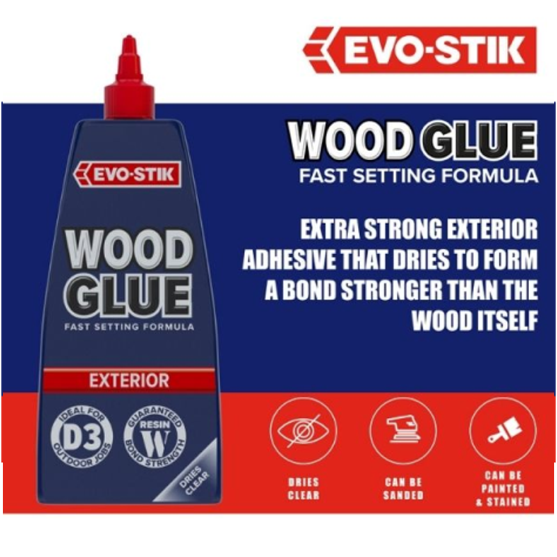 Evo-Stik Wood Glue Exterior is a premium-grade, weatherproof PVA adhesive designed for strong, long-lasting bonds in outdoor woodworking and joinery applications. Specially formulated to withstand moisture and temperature changes, it’s ideal for exterior furniture, doors, windows, and garden projects.